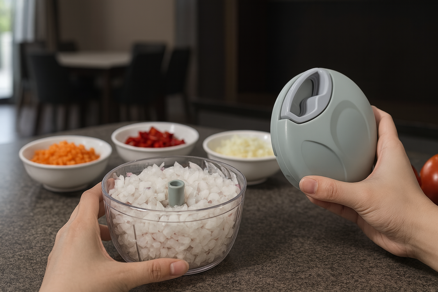 You control the texture — 3–4 pulls for chunky, 8–10 for fine, and 12+ for puree.